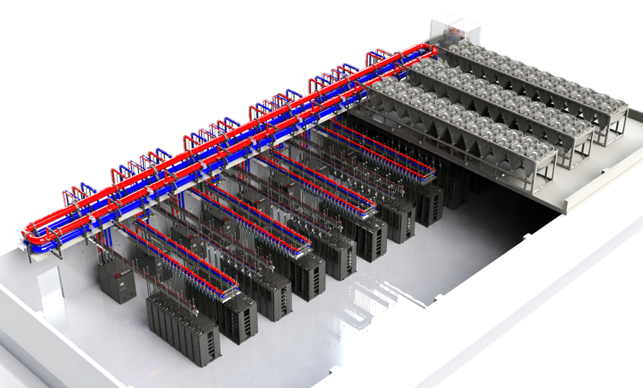 Do fornecimento da fonte fria à distribuição hidráulica, passando por CDUs, cold plates, manifolds, tubulações e sistemas de monitoramento, cada elemento é projetado para operar de forma integrada e confiável.